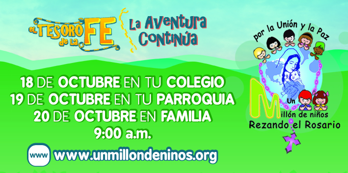 uN MILLÓN DE NIÑOS REZANDO EL ROSARIO POR LA PAZ, EL tesoro de la fe, la aventura continúa Niños de nuestra Insatitucón rezan el rosario pidiendo por a Paz del mundo, Actividad a Realizarse el Viernes 18 de Octubre del presente año en el escenario de la Institución